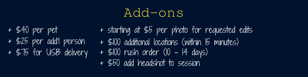 Pet sessions are as important as school photos! Our tiny furry hearts are very special and the photos we take of them are cherished for a lifetime.